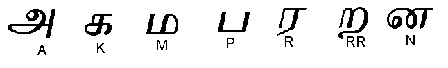 These few lessons will help one to read Tamil script. This figure has the letter M and the vowel sound AA as in fAther .