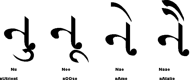 The first is an accent , to be used very rarely since most people now where to lay the stress . For instance in the word stuN it would be over the N. The next is an AA sound . Then followes little i as in hit . Note that this is put before the letter eg N here but pronounced after it. Finally we have the long ee as in Neem tree.