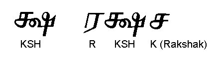A combined letter is k and Sh as in KSH . Rakshak is Hindi for a bodyguard