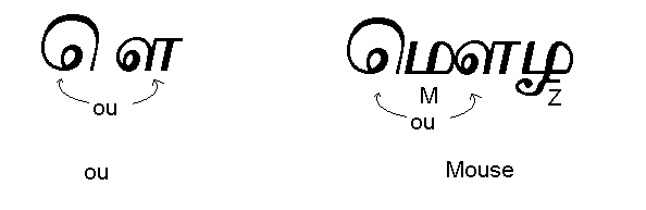 When the ou mark modifies a consonant it is written before and after a letter as follows in this word mouse where it modifies the letter M.