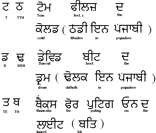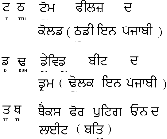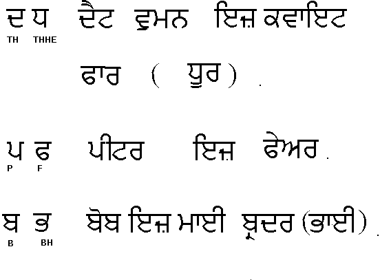 These sound very similar , the second one in each series usually does not have a countepart in English so the equivalent Punjabi word is given in brackets. The second sound in each case is sounded from the chest.